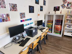 Les collègues des Services Techniques ont réalisé deux meubles. Le premier pour proposer désormais deux ordinateurs aux usagers, et le second pour ranger les coussins sur lesquels les enfants s’assoient lors des accueils de classes.